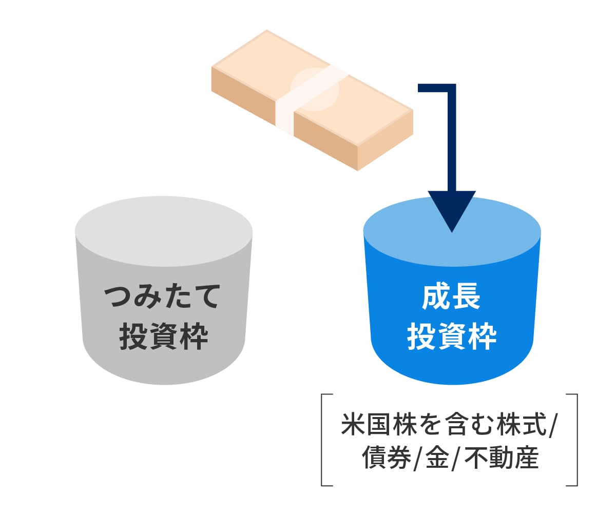 クイック入金や振込での入金など、自動積立以外の方法でご入金いただいた場合は、つみたて投資枠は利用できず、成長投資枠のみで資産を購入します。